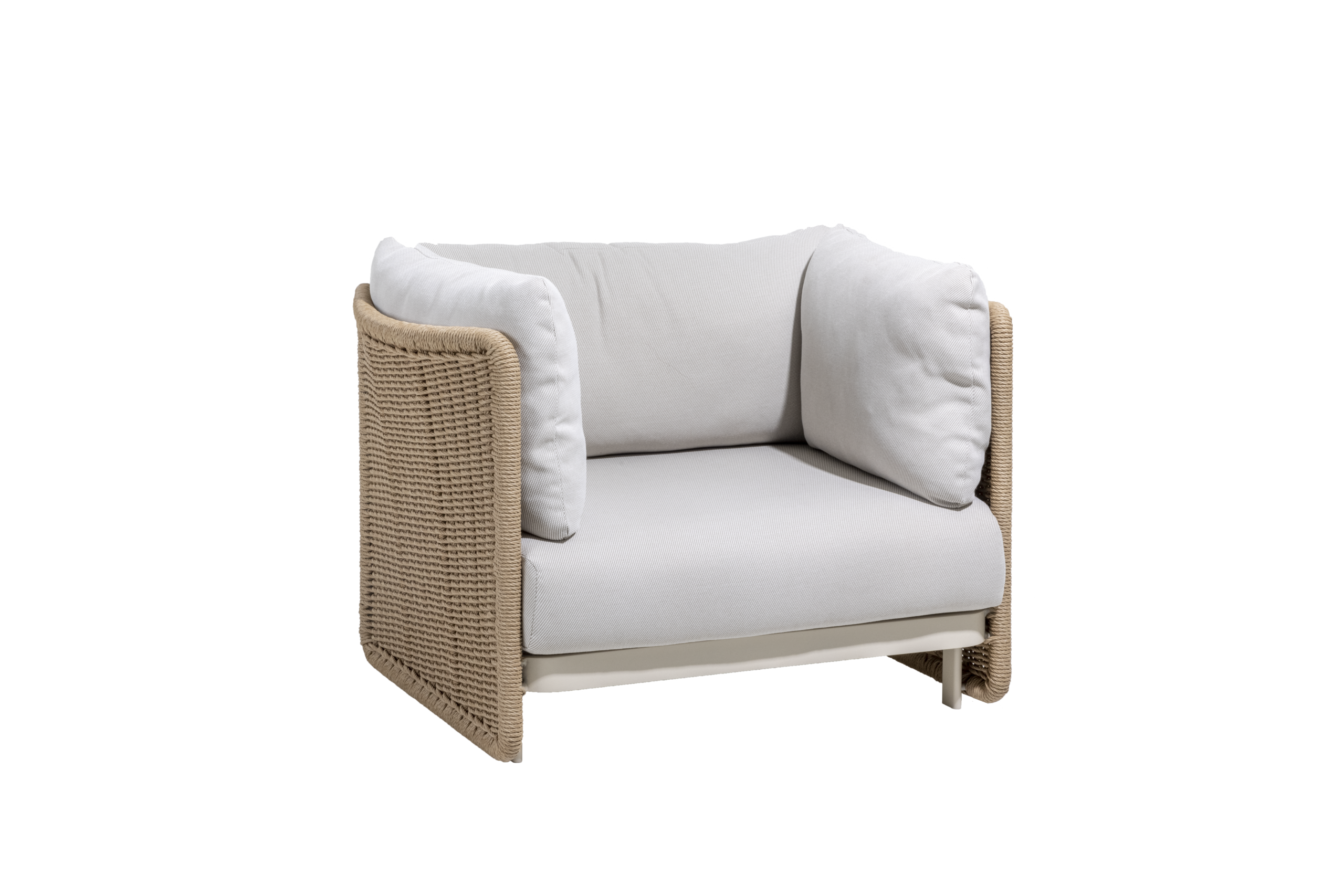 Castelle –Create a stunning look with castelle in your outdoor living space. This eye-catching VIRO HDPE twisted wicker is seamlessly hand woven around a fully welded aluminum frame. Its criss cross pattern, board arm structure and extra side cushions give a modern open air retreat feel.